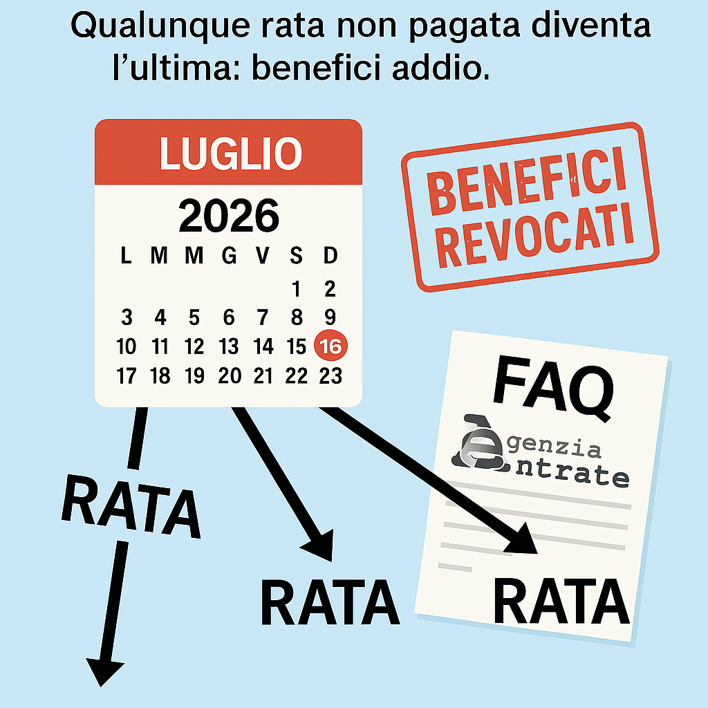 Sul tema della decadenza, nell’ambito del pacchetto di FAQ diffuse il 20 gennaio dall’agenzia della riscossione, vi sono alcune precisazioni. Un primo chiarimento riguarda il caso in cui il contribuente sceglie di pagare in unica soluzione ma versa dopo la data del 31 luglio 2026. Ovviamente, in questa ipotesi, alla luce della norma la risposta precisa che l’omesso o insufficiente pagamento delle somme dovute entro la scadenza del 31 luglio 2026,